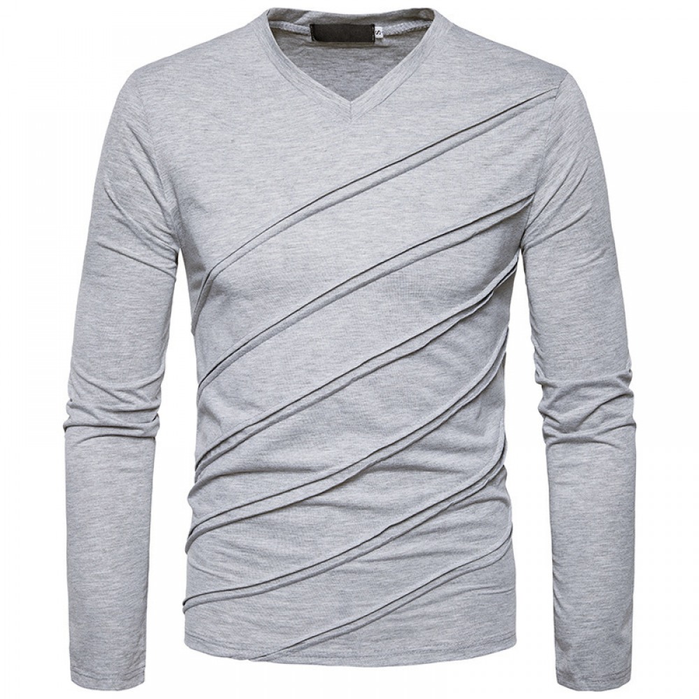 Fashion Fold Long Sleeve V-Neck Solid Color T-Shirt
