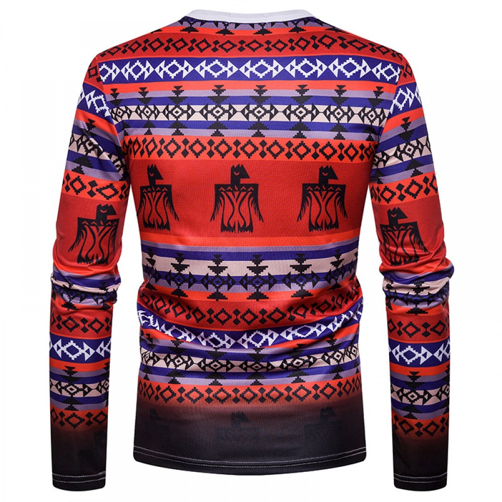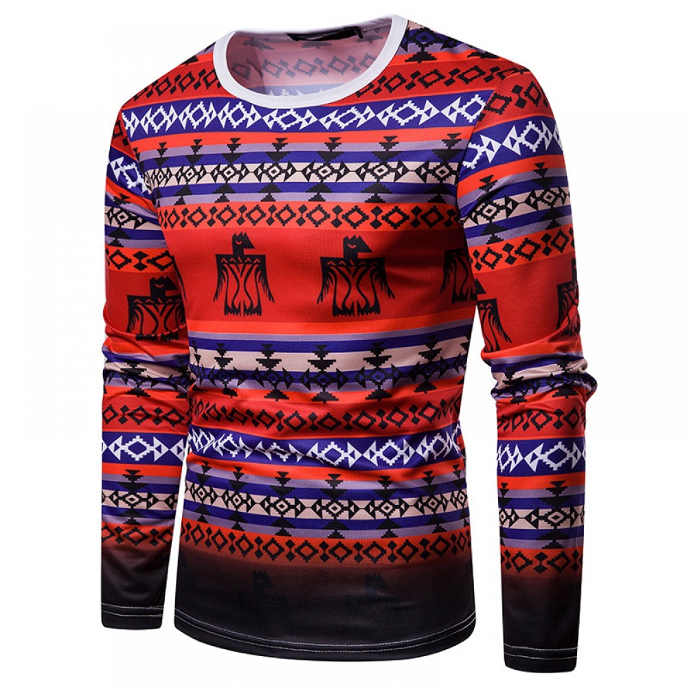 Men's Personality Ethnic 3D Printing Round Neck Long Sleeve T-Shirt