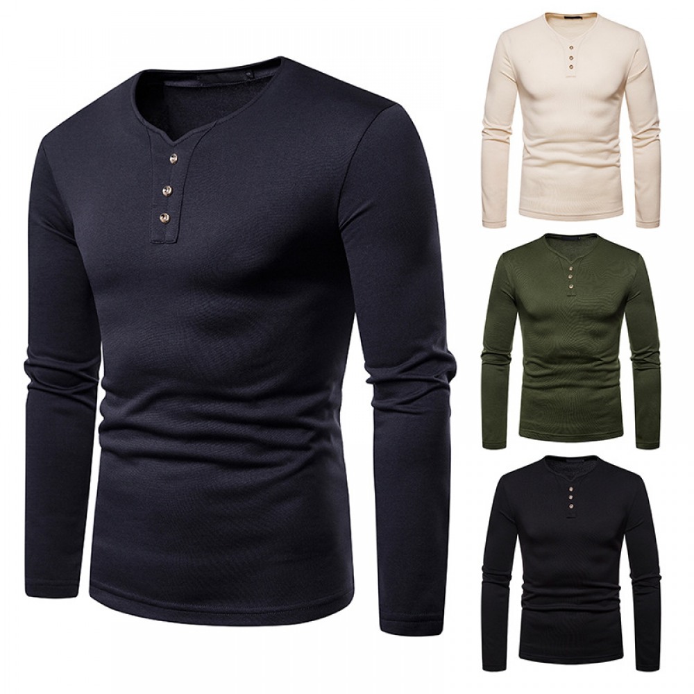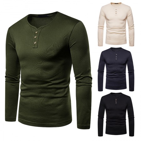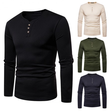 New 3D Personality Printing Fashion Men's Christmas Button Pattern Long-Sleeved T-Shirt
