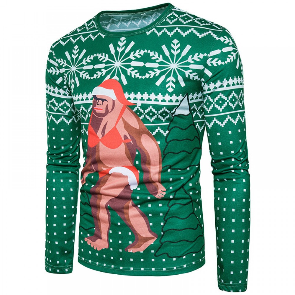 Men's Celebrity Style Printing Men's Round Neck Long-Sleeved T-Shirt